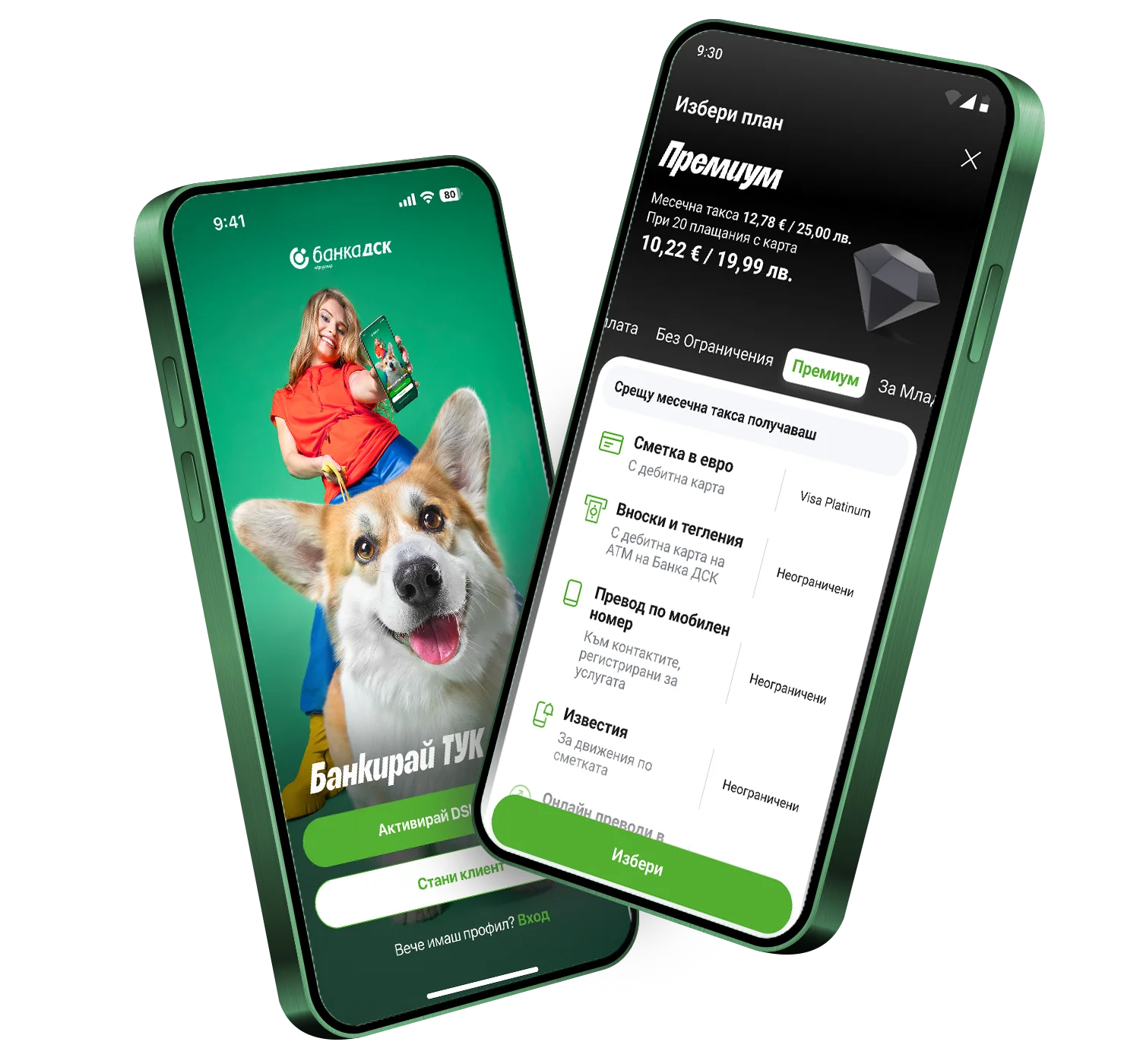В DSK Mobile можеш да откриеш план за ежедневно банкиране със сметка и карта изцяло онлайн. Изтегли, избери Стани клиент и следвай стъпките.