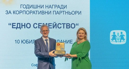 Виолина Маринова, главен изпълнителен директор на банката получи наградата в първото издание на годишните награди на организацията „Едно семейство“